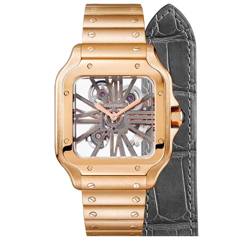 Cartier Santos Large Skeleton WHSA0016 Rose Gold Super Clone,High-end version,Top replica