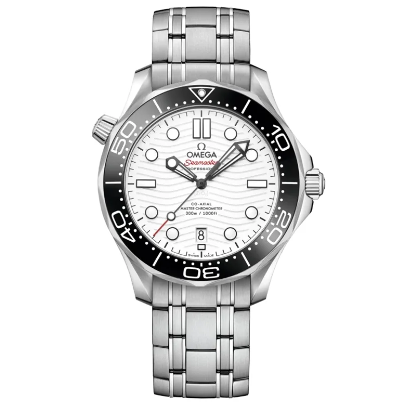 Seamaster Diver 300M Black Ceramic Bezel White Ceramic Dial on SS Bracelet 42mm