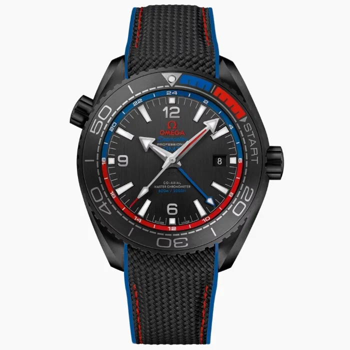 Bezel Uni-directional rotating ceramic bezel with 1/4 red&blue rubber
