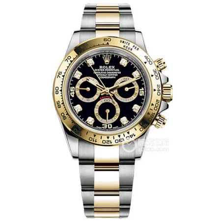 Rolex Cosmograph Daytona Two Tone Yellow Gold & Steel with Diamond Black Dial Replica