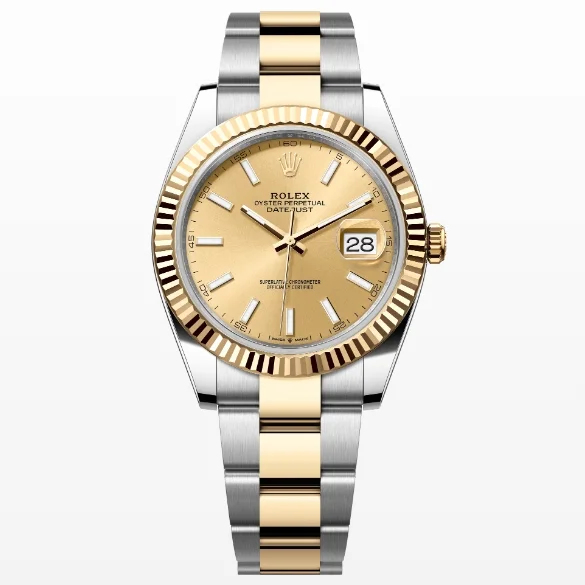 Case: Stainless steel case with screw down crown and fluted bezel. Case diameter: 41mm. Height: 12mm. (904L Stainless Steel)