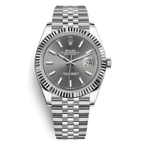 ROLEX Datejust 41 Stainless Steel on Oyster with Rhodium Dial and Fluted Bezel Replica