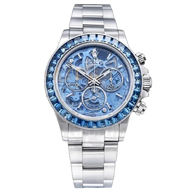 Inspired by the Arolla glacier, a 4km long glacier in Switzerland’s canton of Valais. Dubbed the “Arolla Project”, it’s based on a Rolex Daytona (ref. 116500) and comes equipped with the Rolex 4130 calibre, although that has been transformed entirely along with the rest of the piece.