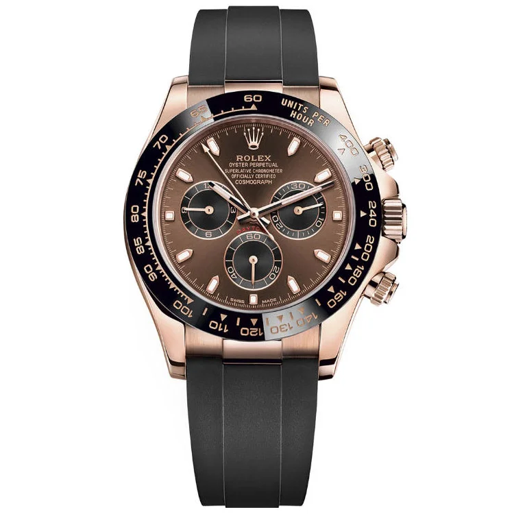 Strap: Black Rubber Oysterflex bracelet with foldover clasp.