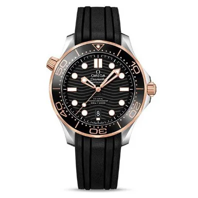 Seamaster Diver 300m Stainless Steel with Black Dial and Gold Bezel on Rubber Strap (42mm) Super Clone